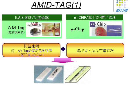 目前Hitachi Chemical、日本NEXT CO.,LTD以及全球AM商品防竊系統廠商美國WG公司共同開發出AMID系統。合作內容為NEXT CO.、LTD將HITACHI CHECMICAL所開發的U-CHIP 2.45GHz晶片值入AM安全標簽中,搭配WG公司所生產的AM商品防竊盜系統,提供零售通路一個新型態的應用。