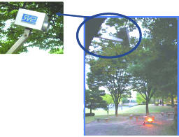 如圖2所示,這個讀取器能感測與讀取到溫度資料,除此之外,這個特殊設計的讀取器容器可旋轉鏡頭,用以感測周遭環境,而不用在林區中架滿感測器,否則,可能有礙遺跡觀瞻。