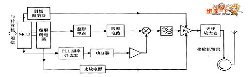 (2)編碼電路根據MCU微控制器傳來的操作命令進行編碼,形成基帶信號送到整形電路和限幅電路進行處理,處理后的信號送往混頻器(上變頻)。