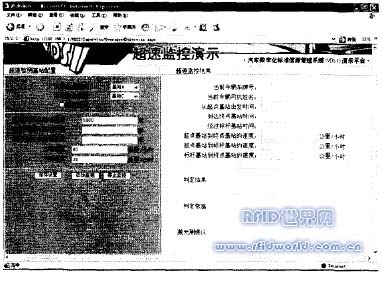 可在某些事故多發地段和重要關口安裝監控基站,當路段車通過第1個監控基站時,閱讀器就開始識別路段車的電子標簽的相關信息,并在后臺的超速監控軟件中開始記錄識別車的相關信息;當路段車到達第2個監控基站時,在已知的兩基站之間的距離和路段車通過的時間下,可得到此車在兩基站之間的平均速度,然后通過與路段車型的上限速度相比較,即可判定此車是否超速,若超速,則在司機卡的電子標簽的對應字段中寫入超速的相關信息,作為電子數字處罰單的憑據,并還能在后臺的監控系統中打印出詳細的相關超速信息。由于在重要路段上安裝有監控基站,因此可以查控車輛的區域性運行狀態的全過程記錄及回溯。此技術的應用有利于交通管理部門的數字化和智能化管理。超速違章車的全路段監控功能實現如圖2所示。