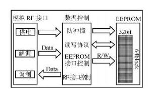 標簽IC主要由模擬、數據處理及EEPROM三個模塊構成,如圖2所示。