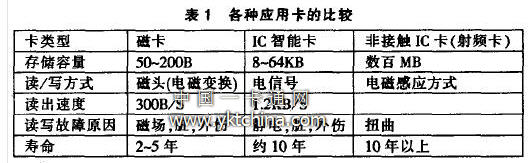 從光電卡到磁卡、接觸式IC卡到現在普遍采用的感應式IC卡(又稱射頻卡),各種應用卡(見表1)發展迅速。