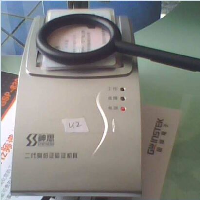 范例使用山東神思電子的通用二代居民身份證驗證機具,需要測量該讀卡器的工作頻點和發射功率。由于該讀卡器工作時不間斷向空間發射RF,因此只要使用頻譜儀和普通RF天線即可直接測量讀卡器的信號。為了避免空間雜訊的影響,可使用環形近場天線。將環形天線連接到頻譜儀RF輸入端(如圖1),再將環形天線接收斷靠近讀卡器感應區(如圖2),這樣就構成一套簡單易行的RFID讀卡器測試系統。