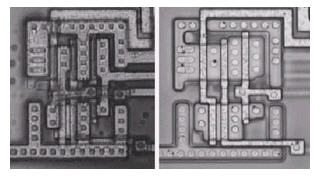 圖2是一個NAND閘驅動一個反向器的光學版圖照片,類似于該圖的不同層照片對于有經驗的人無異于電路圖。