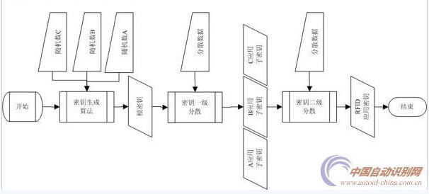答案只有一個,那就是RFID應用系統采用高安全等級的密鑰管理系統,密鑰管理系統相當于在RFID電子標簽本身的安全性基礎上再加上一層保護殼,這層保護殼的強度決定于建立于數學基礎上的密鑰算法。目前應用廣泛的主要有PKI體系(非對稱密鑰算法RSA及橢圓曲線)及簡易的對稱加密體系(DES及3DES等),以在RFID行業應用比較廣泛的對稱密鑰管理系統來說明。參見圖2。