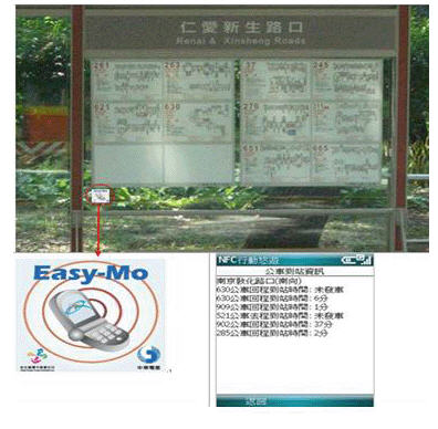 NFC手機的應用服務與發展與電信密不可分,故本公司于95年與中華電信聯合申請經濟部技術處“行動悠游Easy-Mo”計劃,借此推動NFC之應用服務。該計劃期間自2006年9月起,相關研發及示范應用發展至去年(2008年)4月正式結案,透過經濟部技術處大力支持,促使國內各電信業者、服務提供業者、手機及相關零組件廠商、使用者等均對于NFC產業有所期待,并使得國內業者均了解NFC非一己之力可達成,促成了各業者能夠有志一同創造國內NFC需求、進一步帶動相關產業價值鏈發展之趨勢。于“行動悠游Easy-Mo”計劃中,結合悠游卡與手機功能,并藉由NFC手機特性,衍生交通與資訊等相關應用服務,相關應用如下列分述: