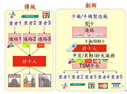 TSM平臺成立后,同樣將帶動整個智慧卡產業之作業變革,以圖7說明傳統與創新的智慧卡作業模式。