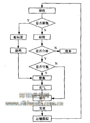 針對鋼瓶的作業主要涉及鋼瓶建檔、標簽粘貼、空瓶清點、鋼瓶檢驗、整瓶、鋼瓶充裝、鋼瓶盤存和鋼瓶發放等,其典型工作流程如圖3所示。