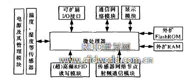 RFID讀寫器與WSNs網關(中心節點)具有相似的基礎功能結構,本文研發的(超)高頻RFID和傳感器網絡綜合控制器兼顧2類部件的功能,其結構框圖如圖5所示”。