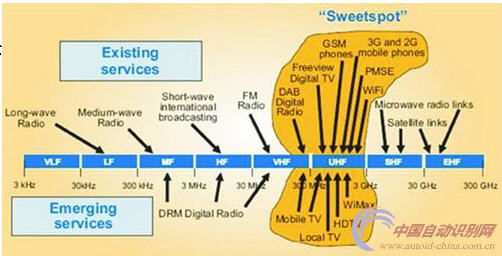 典型的射頻識別系統工作頻率為LF(低于135)、HF(13.56MHz)、433MHz、UHF(840~ 960MHz)、2.45GHz和5.8GHz。其他頻率的RFID應用一般屬于專業應用的范疇。