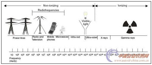 圖3 電磁輻射對人體影響研究的頻率范圍(注:引用圖)
