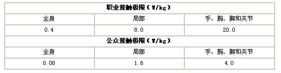 表4國內電磁輻射人體接觸比吸收率SAR限值
