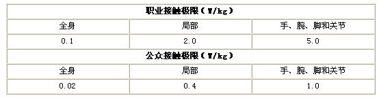 表3國內電磁輻射人體接觸限值