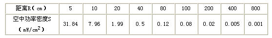 解:利用公式(1),可求得如表5所示的結果。 表5 功率密度隨距離的關系(PG=10W)