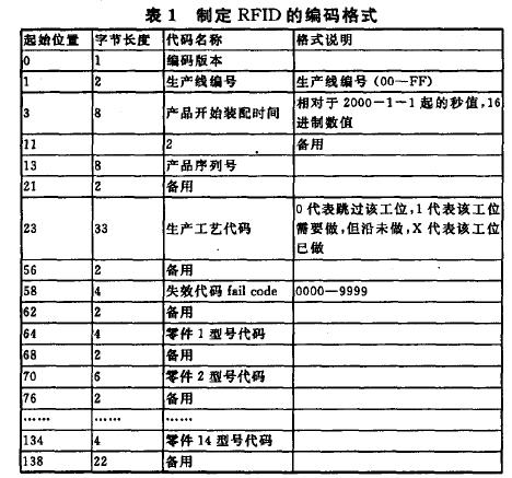 表1 制定RFID的編碼格式