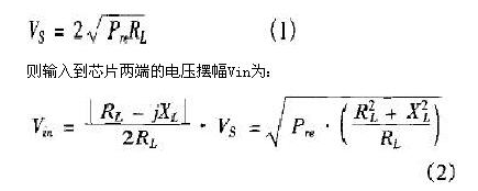 與13.56MHz的HF應答器不同,UHF頻段的RFID應答器采用偶極子天線。圖5是應答器與天線的SPICE(simulation program with integrated circuit emphasis)等效電路圖。在該等效SPICE電路模型中,接收到的射頻載波信號為Vs,天線的阻抗為Zs=Rs+jXL,可以看作是電壓源Vs的內阻,而應答器芯片的等效輸入阻抗則是ZL=RL-jXL。所以,當ZL=Zs*時,阻抗匹配,功率傳輸最大。在阻抗匹配的情況下,從帶有天線的應答器看去,得到的阻抗應該是Z=2RL,從而我們得到接收功耗Pre和電壓擺幅VS之間的關系為側: