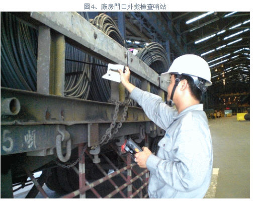 圖1 、檢核站人員使用Barcode讀取器確認產品資料(資料來源:中鋼公司運輸處)