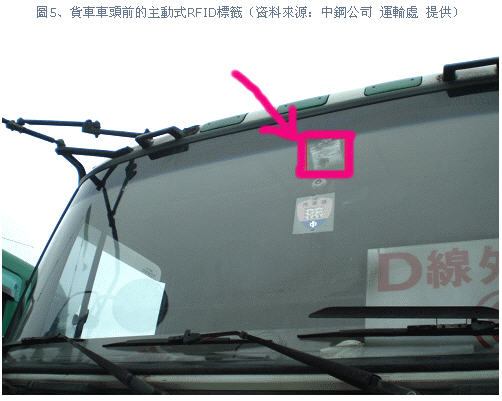 圖5、貨車車頭前的主動式RFID標簽(資料來源:中鋼公司運輸處提供)