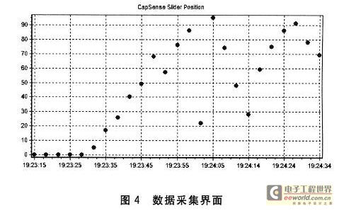 按照上述方法,再結合Hub的PSoC程序中定義的命令和:Bus Hound抓包得到的結果,就可以對FTPC設備中的Hub執行相應的操作了,如進入綁定狀態,讀取綁定結果,讀取接收到的消息等。節點綁定成功之后,即可查看實時的數據采集情況,包括數據采集的時間和滑塊位置值等,如圖4所示。