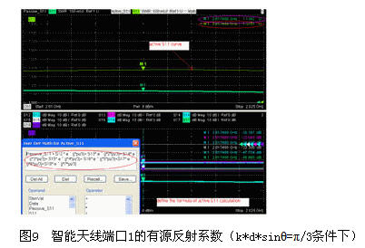 由圖9,圖10可知,利用ZVT的8端口和強大的Trace Math功能,可以實時的顯示任意掃描角下的各端口有源反射系數,為智能天線系統的研發和生產測試提供了極大的便利。