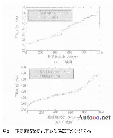實驗結果表明,經過一定的傳輸時延后(對于1024字節的數據包,考慮到90%的概率,局域網為23~36ms,廣域網為408~580ms) , IP傳感器可基于以太網與其它的網絡主機進行可靠的數據交換,可廣泛應用于非嚴格實時要求的網絡化傳感、測量系統中完成現場設備的信號采集。