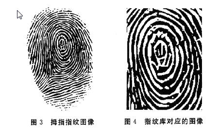 采用The MathWoks公司的MATLAB7.O圖像處理箱進行數據仿真,計算機配置CPU為INTEL公司2.06 GZH,內存為Kingston公司的1GZH,平均一幅圖像數據仿真耗時為O.73秒。識別率誤差小于1/310 000,完全實際符合要求。圖3為隨機的一幅拇指指紋圖像,圖4為指紋庫采集對應的圖像。