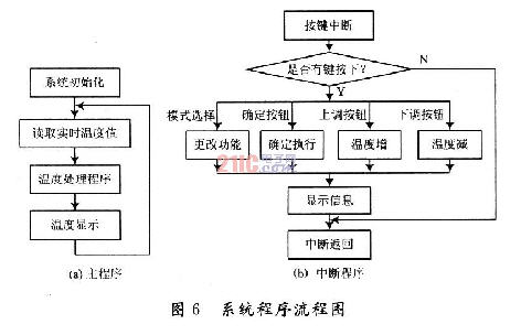 MSP430采用C語言開發環境,大大提高了軟件的開發的工作效率,提高了程序的可靠性、可讀性及可移植性。主程序與中斷程序流程如圖6所示。