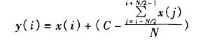 標簽回發的數據幀同步頭包括若干個前導零加前同步碼,基帶程序在規定時間內探測到同步頭之后才能開始信息解碼接收,交流耦合方式雖可減輕信號過載造成的干擾,但由于讀寫器工作在突發通信模式下,接收電路的階躍響應特性會在同步頭位置產生斜坡效應,往往導致同步判斷錯誤,為處理斜坡,可以在基帶信號處理前進行中值校正,該方法僅需要對采集的數據進行滑動窗跟蹤和p.p值平均計算。其原理是: