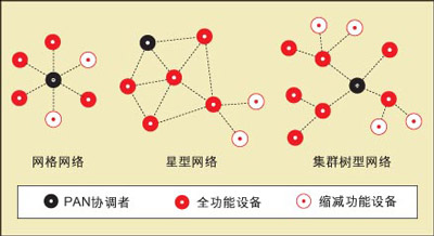 圖2:ZigBee支持多種網絡拓撲, |